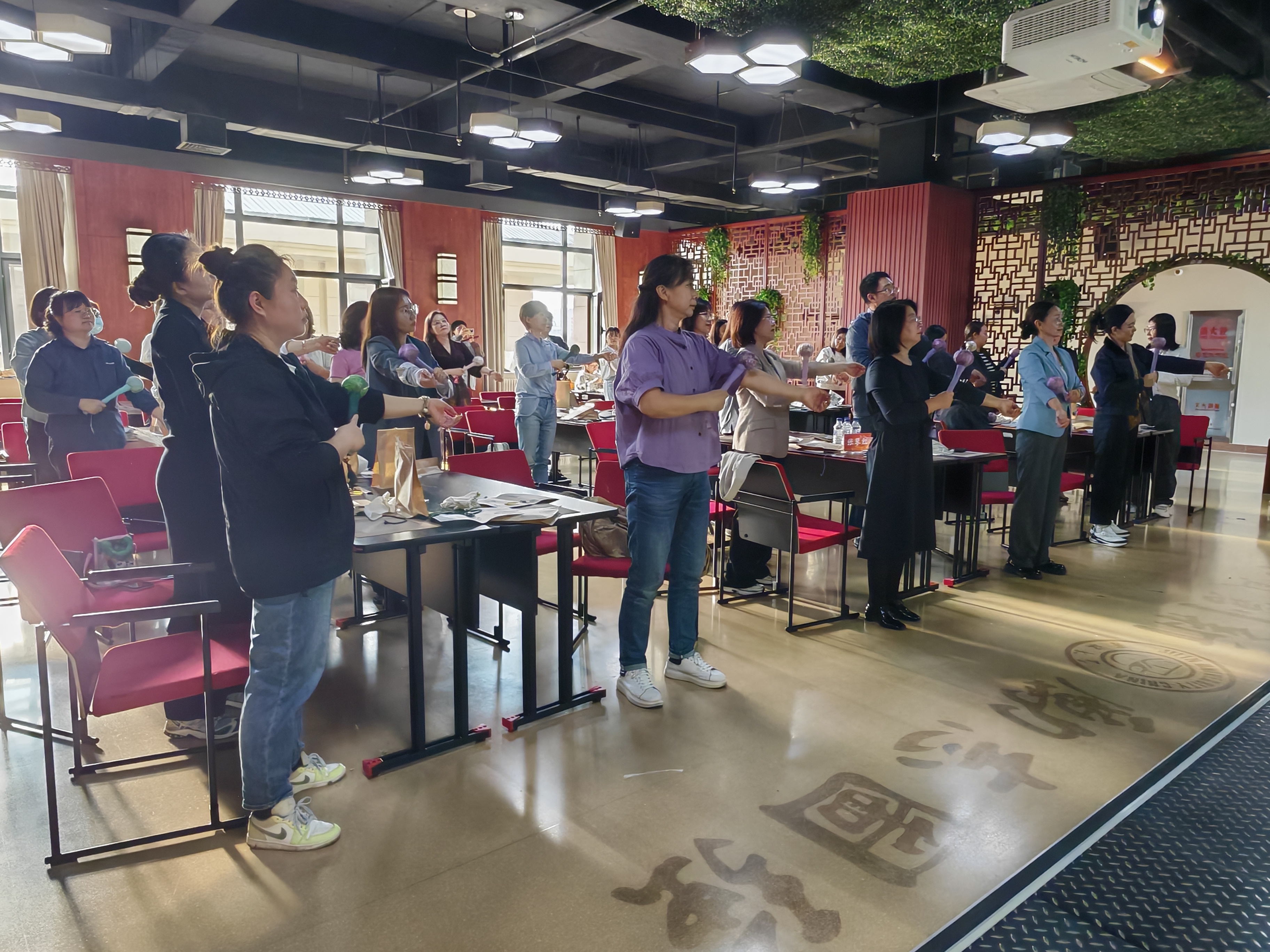 活动中,国家一级美术师、泥塑非遗传承人现场系统介绍了艾草的保健功效,指导女教职工手工制作艾草养生锤,并带领大家体验拍八虚养生操。女教职工们一边认真聆听要领,一边动手实操,不时相互交流心得、请教疑问,活动现场气氛热烈而温馨。