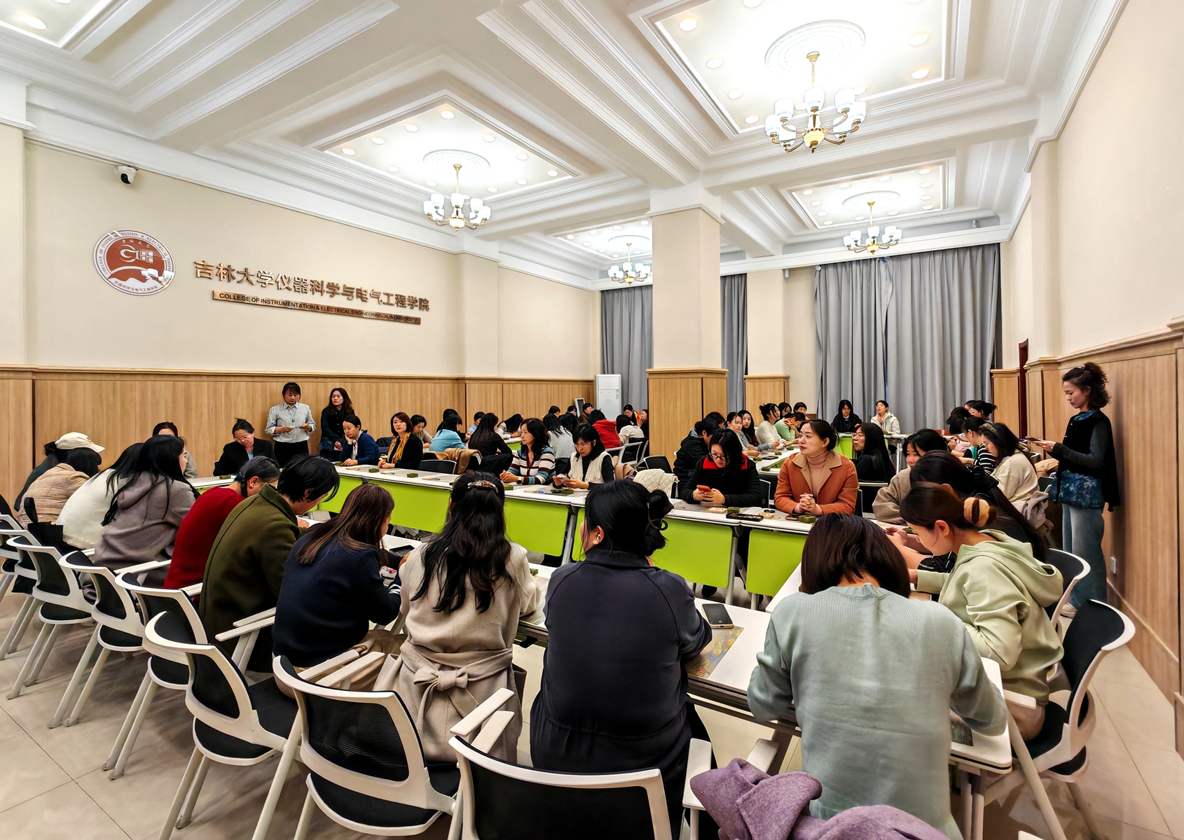 为弘扬中华优秀传统文化,增强文化自信,展现新时代吉大女性的活力风采,妇委会于10月22日在朝阳校区举办了2025年“女教职工健康美丽计划”系列活动——景泰蓝手串DIY,朝阳校区女教职工60余人共赴“传非遗之韵 串匠心之美”的匠心之旅。活动由妇委会副主任刘星彤主持。