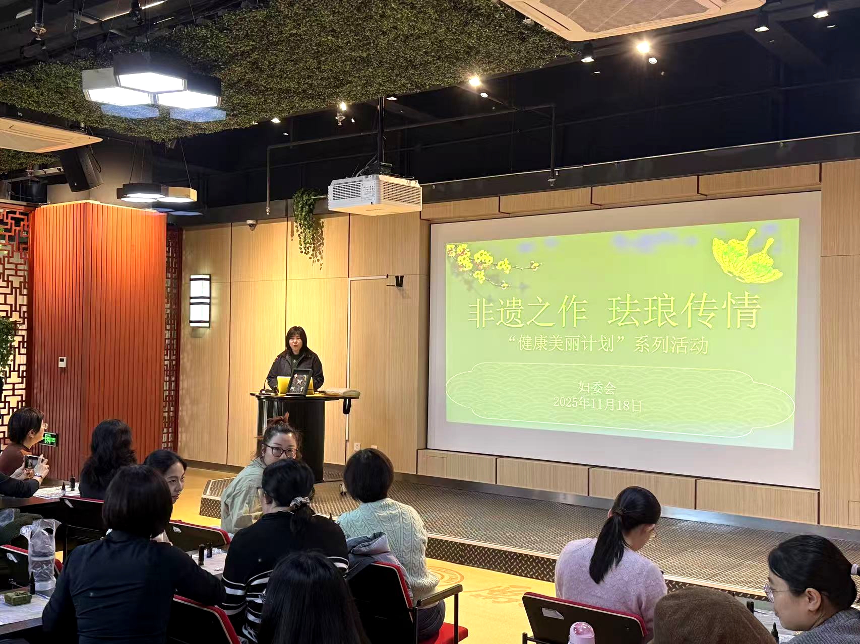 为弘扬中华优秀传统文化,传承非遗文化精髓,深入推进校园文化建设,展现高校女性的风采,学校妇委会于11月18日在中心校区鼎新图书馆8楼学苑沙龙举办了2025年“女教职工健康美丽计划”系列活动,全校女教职工70余人共赴一场匠心之旅。活动由妇委会副主任刘星彤主持。