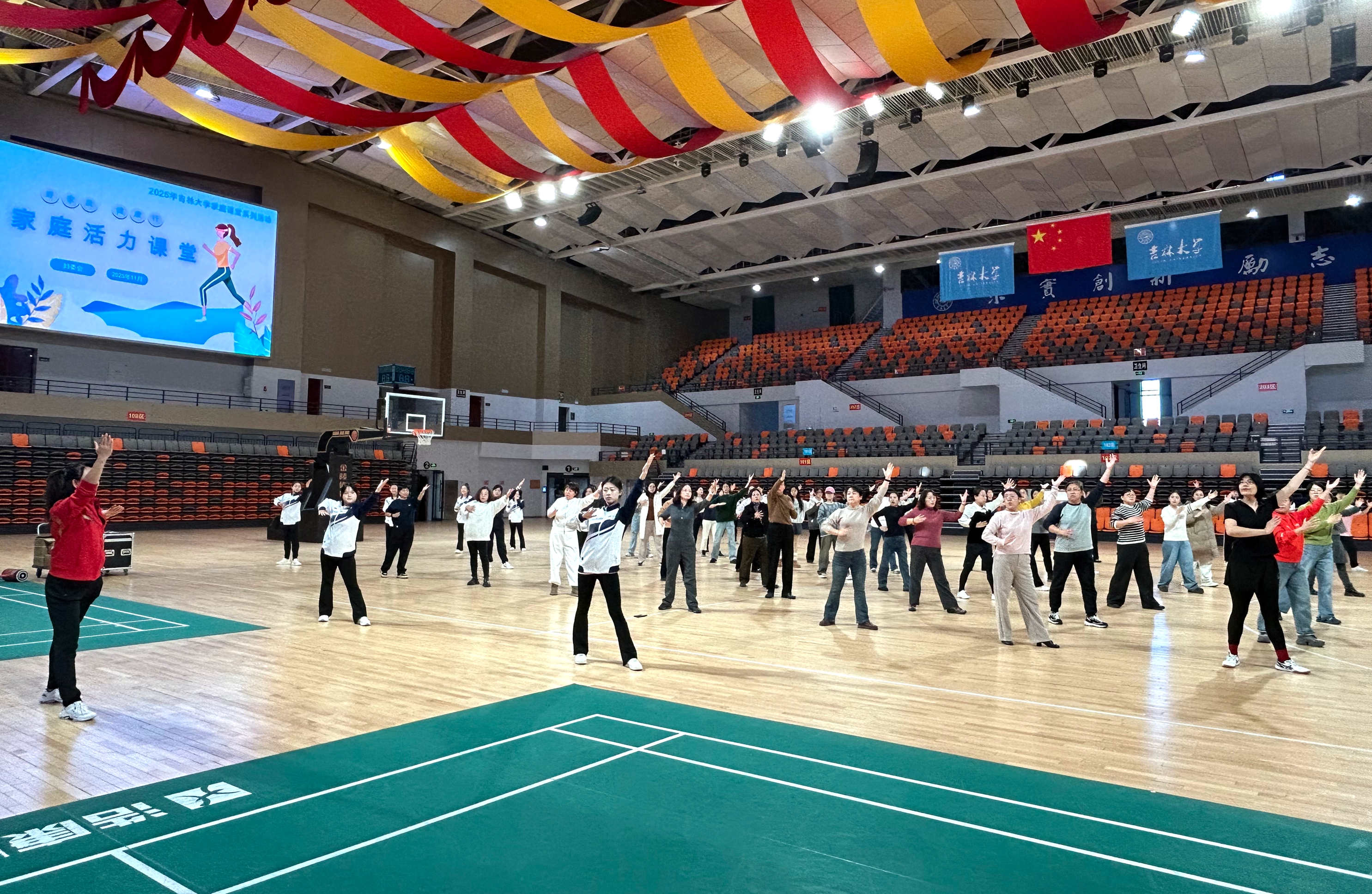 家庭是社会的基本细胞,家风是社会风气的重要组成部分。为深入贯彻“健康中国”战略部署,扎实落实“健康第一”教育理念,将中华优秀传统家风文化与现代健康生活理念深度融合,2025年11月27日,校妇委会在中心校区宋治平体育馆成功举办“好家风・健康行”家庭活力课堂,全校70余名教职工及家庭参加活动。活动由妇委会副主任崔妍主持。