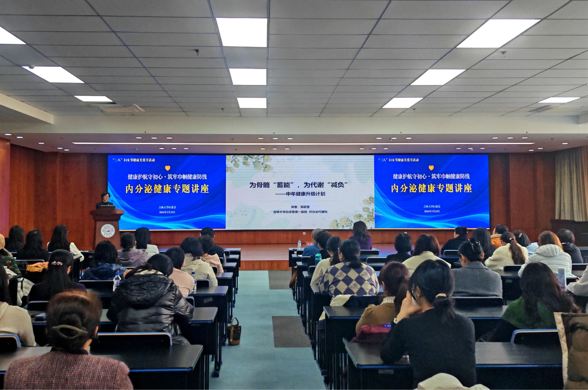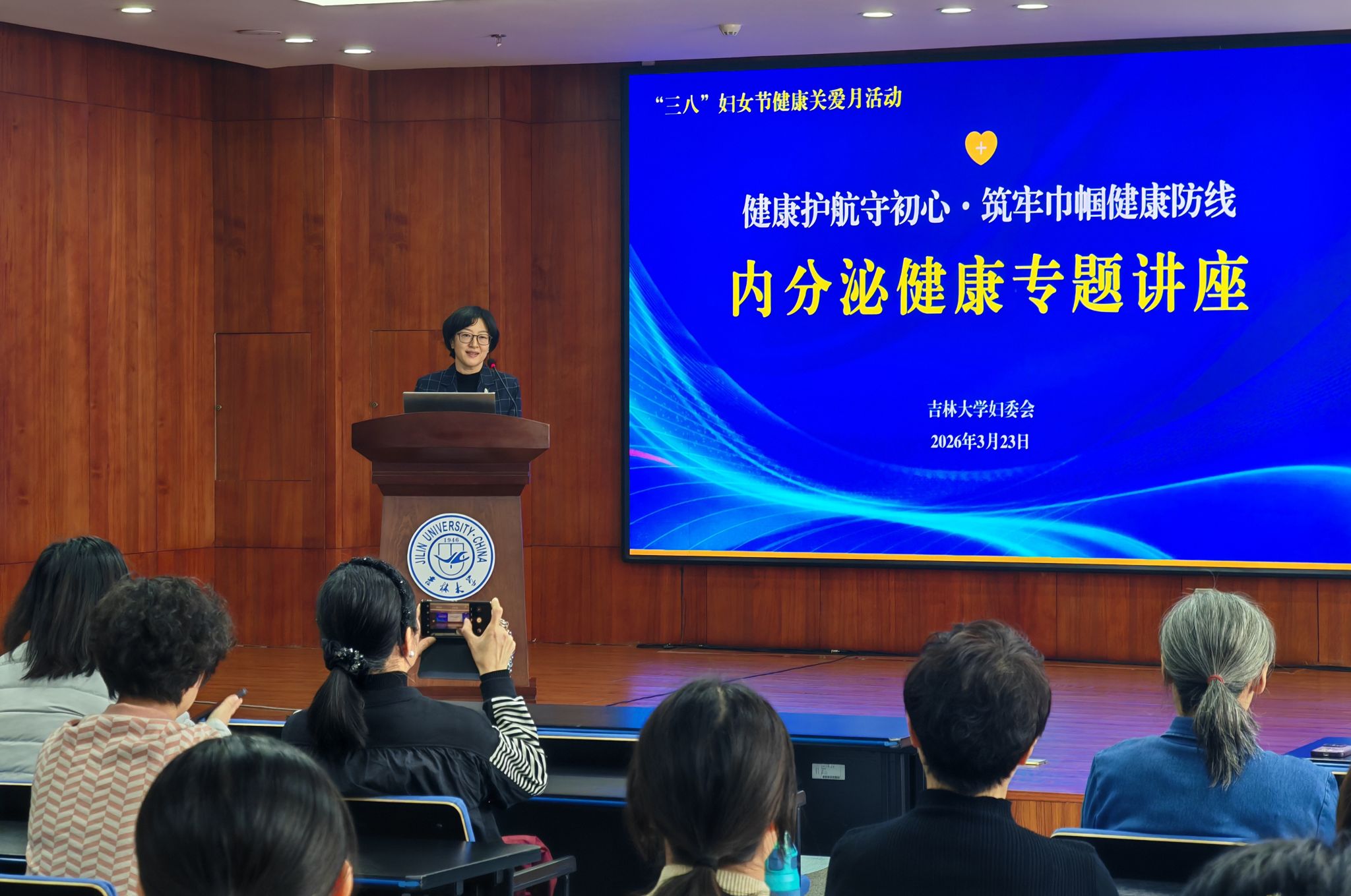 春和景明,暖意融融。为落实“健康中国”战略,扎实开展 “三八” 国际妇女节健康关爱系列活动,3月23日,妇委会依托“吉大家庭课堂”,成功举办女性内分泌健康专题讲座,全校100余名女性师生齐聚一堂,学健康知识、护身心安康,收获了一份特别的“娘家人”关怀。讲座由妇委会副主任崔妍主持。