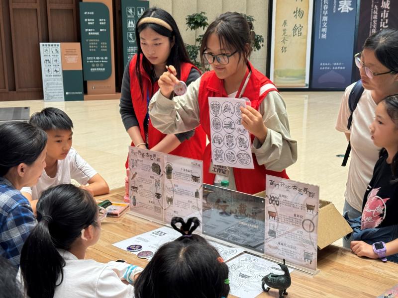 本次活动共设计了四个趣味体验项目:字有乾坤,带领参与者们领略汉字背后的文化密码,体验造字之趣;妙铸青铜,为大家揭秘青铜铸造工艺,打造生肖青铜印记;轮转千秋,通过车马模型及趣味演示,带大家探寻古代车马之技,感受掐丝工艺魅力;纹以载道,由器物纹饰入手解读器物纹饰背后的哲思,自制纹样徽章。
