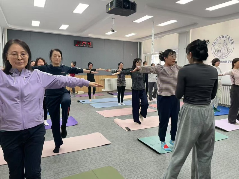 在新时代巾帼建功精神的引领下,为丰富学院女教职工的精神文化生活,基础医学院妇委会积极响应学校妇委会号召,于2025年精心策划并组织实施“妇女小家一家一品”创新项目——“奋进新时代,巾帼展风采”女性成长赋能主题系列活动。项目以合唱团建设、瑜伽课程为载体,全面激发学院女教职工活力,营造出积极向上、团结奋进的学院氛围。