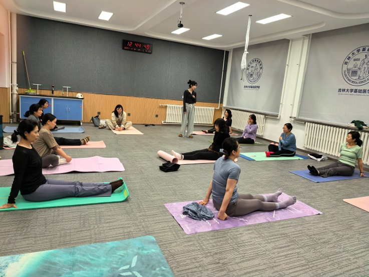 同时,为帮助女教师缓解教学、科研压力,增强身体素质,学院妇委会特别开设“优雅绽放”瑜伽训练课。课程邀请体育学院专业瑜伽导师执教,每周两次利用午间准时开展,通过系统的体式训练、呼吸调节和冥想放松,帮助教师在繁忙工作之余舒缓压力、提升状态。学院配备了专业的瑜伽砖、平衡波速球等器材,为学院女教师创造了优质的训练环境。课程开展以来,获得了参与教师的一致好评,成为学院午间一道亮丽的风景线。