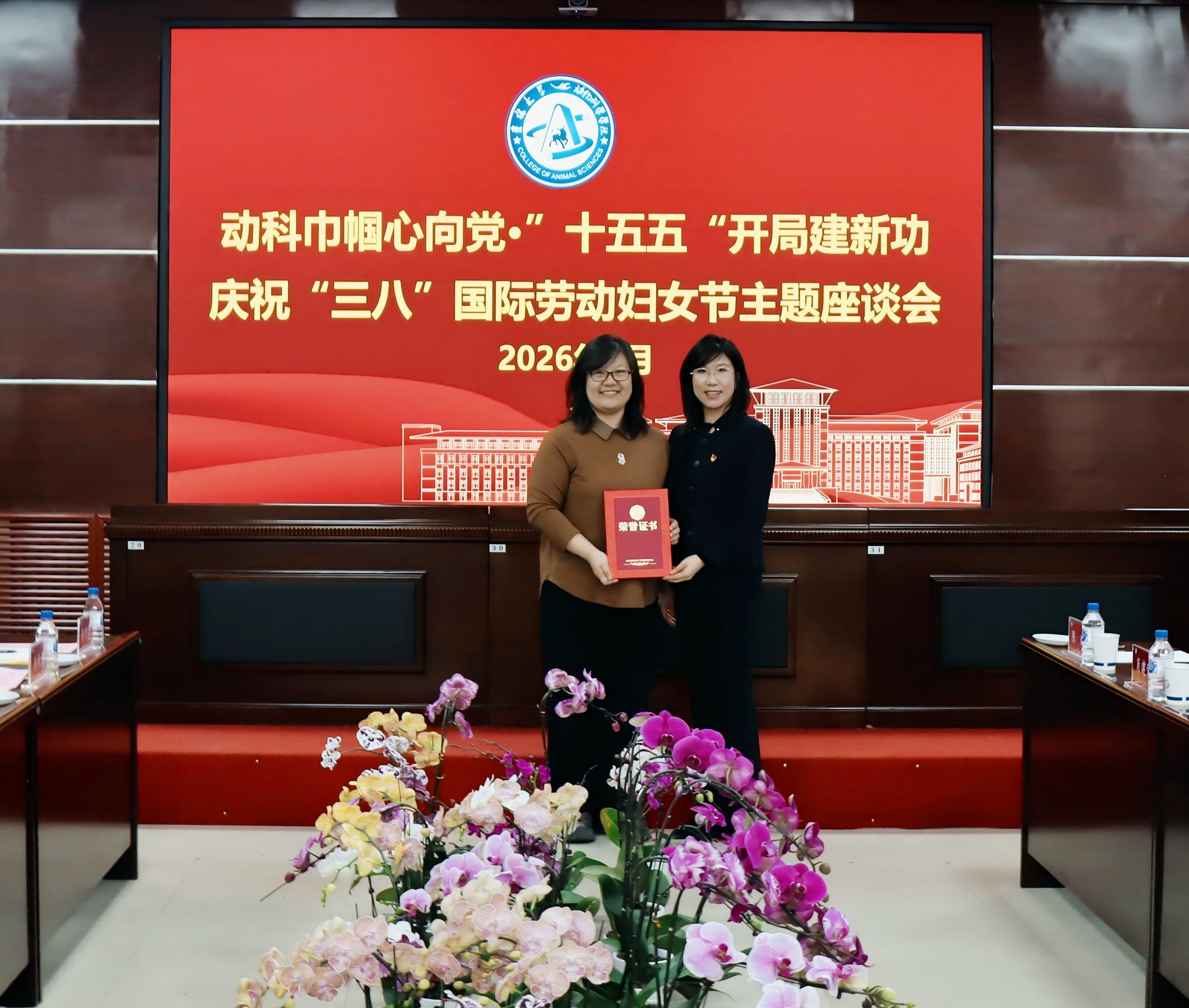 为纪念第116个“三八”国际劳动妇女节,3月10日下午,动物科学学院在学院一楼会议室召开“动科巾帼心向党·‘十五五’开局建新功”为主题的纪念“三八”国际劳动妇女节座谈会。学院党委书记徐仁元,党委副书记兼副院长、纪委书记肖建荣,副院长逄大欣,学院女教职工和学生代表参加,学校妇委会主任郑爽,副主任崔妍、刘星彤和办公室张晓琳出席座谈会。座谈会由学院妇委会主任陈璐主持。