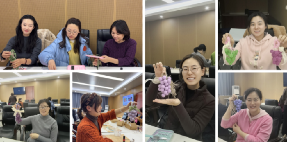 活动现场暖意融融,妇委会提前准备了皂基、天然精油、食用色素、创意模具及装饰配件,并邀请专业老师现场讲解示范。从原料配比、加热融皂、调色加香,到入模定型、冷却脱模,每一步都清晰易懂、细致贴心。女职工们暂时卸下教学科研的忙碌,化身手工创作者,大家相互协作、分享技巧,在欢声笑语中探讨配方、交流心得,在香气萦绕中舒缓压力、愉悦身心。一串串造型可爱、香气清新的葡萄手工皂陆续成型,不仅是女职工们巧思与匠心的结晶,更承载着节日的美好祝福与对生活的热爱。