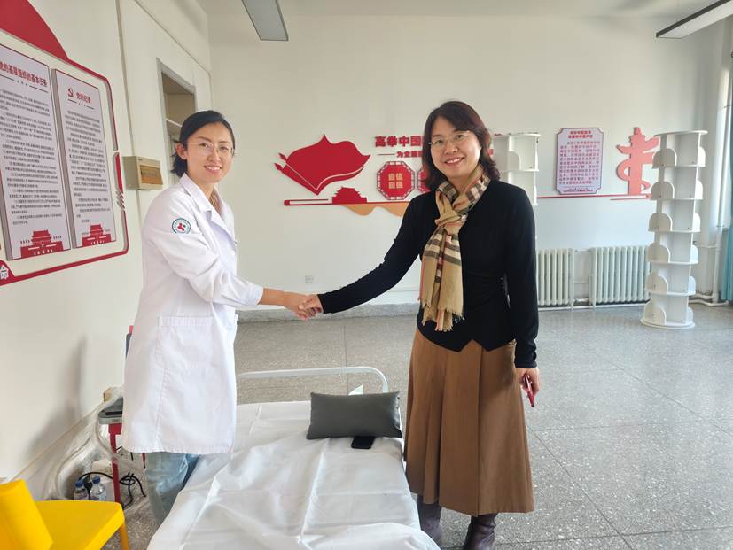 活动现场,吕宁宁医生率先为女教职工开展一对一公益超声健康义诊服务,现场秩序井然、氛围温馨。诊疗过程中,吕宁宁医生凭借专业的医技为每位教职工细致完成超声检查,精准排查妇科、乳腺等方面的健康隐患,针对检查过程中发现的问题,逐一耐心解答教职工的各类健康疑问,结合每个人的身体状况、工作特点给出个性化的健康指导、调理建议和就医提示,让大家及时、清晰掌握自身健康状况,足不出校就收获了专业、贴心的健康帮扶。