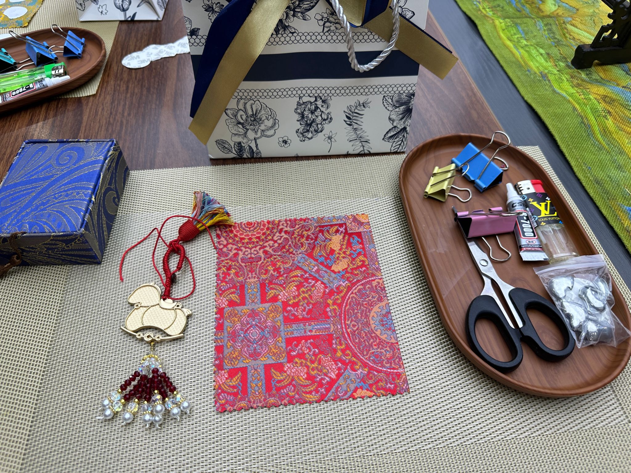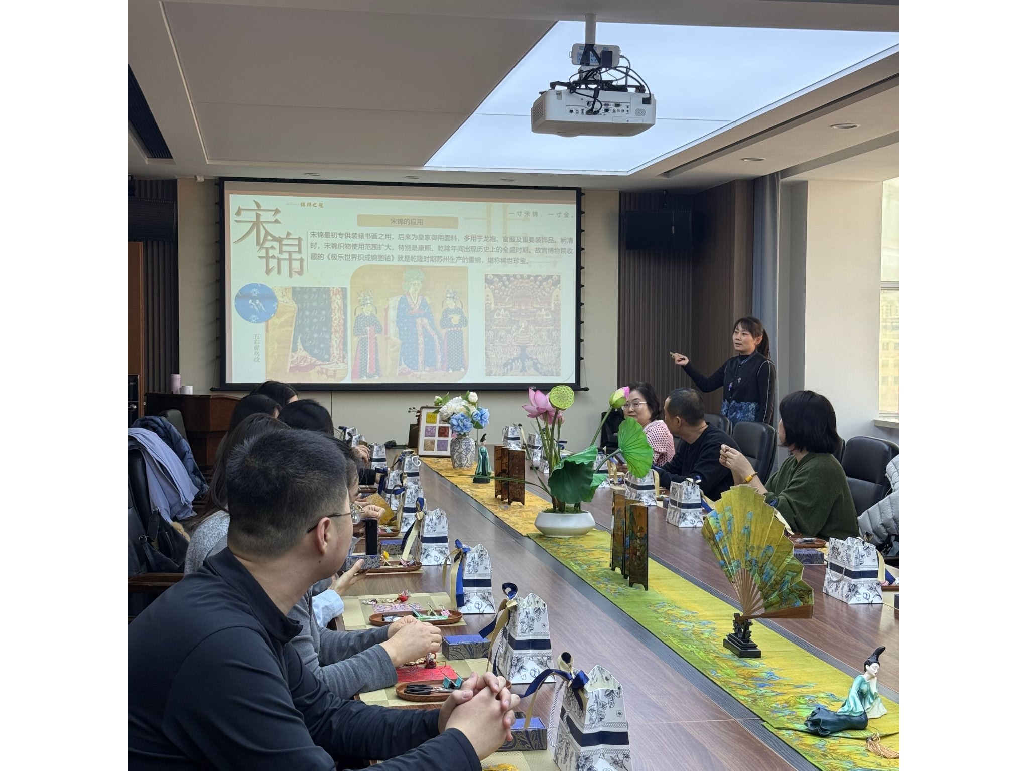 活动现场特邀非遗技艺传承老师,为大家系统讲解并展示了国家级非物质文化遗产——宋锦刺绣工艺的独特魅力与文化内涵。在老师的悉心指导下,教职工们亲手体验了宋锦挂件的制作过程。从布料选配、图形裁剪,到粘贴固定、装饰美化,每个环节均有专业示范与实时辅导。活动现场准备了齐全的材料与工具,气氛温馨而专注。