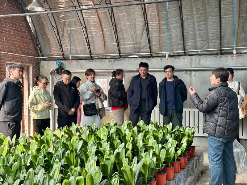 在君子兰种植区,几千株君子兰叶形挺拔、花姿端庄,翠绿枝叶间繁花摇曳,清甜香气沁人心脾。教职工们结伴漫步于花丛之间,或驻足观赏,或拍照留影,尽情感受春日田园的宁静与美好。